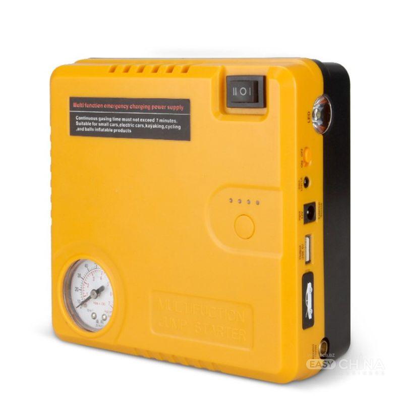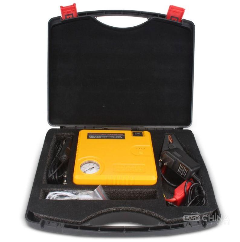 насос со встроенной батарей, адаптер для зарядки (евро вилка), адаптер для зарядки от прикуривателя, переходники для насоса, стартовые провода;